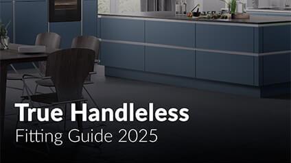 With its continuous handle built into the cabinet, the kitchens True Handleless feature gives a modern and clean look to any kitchen.  The True Handleless detail is available in choice of 6 colours with a huge range of unit choices.  True Handleless styles are available in standard high gloss or matt finishes and in flat slab or shaker door ranges. Learn more about True Handleless